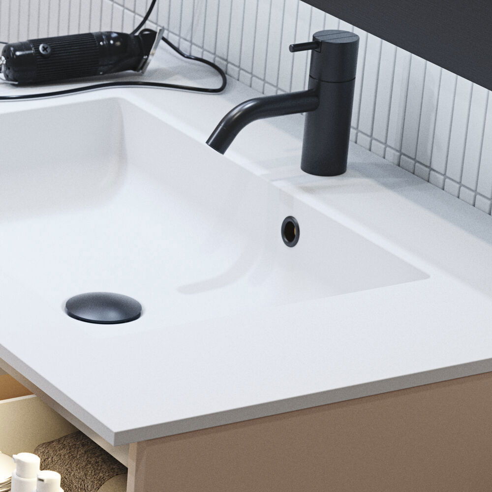 En overløpsrosett er en viktig del av servantens design. Den monteres vanligvis rundt overløpet og fungerer som et sikkerhetstiltak for å hindre at vannet kommer over kanten av servanten og oversvømmer den. Overløpsrosetten leder overflødig vann tilbake og holder vasken tørr. Dette enkle, men viktige elementet bidrar til at badet forblir rent og ryddig, selv når vannet i servanten stiger..