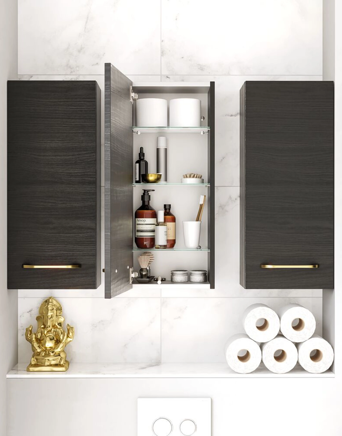 Hold orden på alle småtingene på badet med dette Dansani Mido+ overskapet. Med dette overskapet får du rikelig med ekstra oppbevaringsplass på badet. Skapet har 3 glasshyller som gir deg god plass til å oppbevare kremer, deodorant, hårbørster osv. Overskapet fås selvfølgelig i de samme dekorene som resten av Dansani Mido+-serien, slik at du alltid kan finne en dekor som passer til møblene og resten av badet ditt.