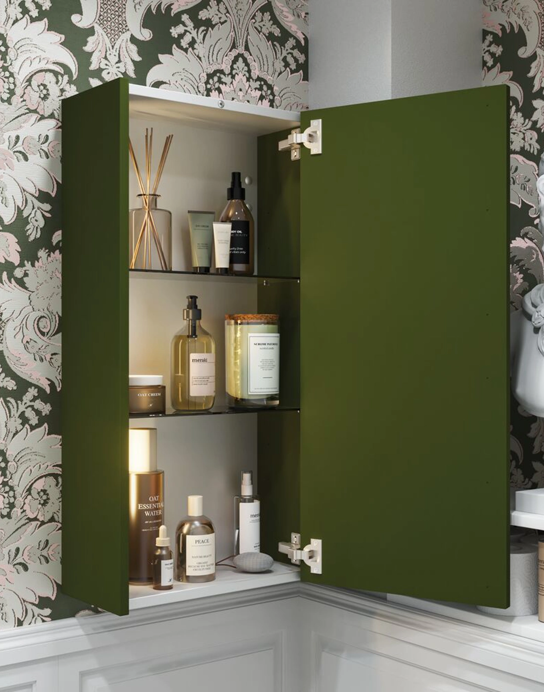 Legg til et tidløst element i badet ditt med et overskap med klassisk rammefront. Med sin elegante ramme og de to glasshyllene som gir en klar oversikt over innholdet, er dette skapet perfekt for å holde badeartiklene dine organisert. Overskapet måler 40 cm i bredden og 19 cm i dybden, noe som gjør det ideelt for mindre rom. Kombiner det med en åpen hylle for å skape et harmonisk utseende, hvor du både kan oppbevare og vise frem favorittproduktene og dekorasjonene dine. OBS: Det tilkommer en oppstartstillegg (BI1) for produkter med valgfri farge. Det betales én gang per valgfri farge, uansettav antall produkter. Husk å tilføre baderomsmøbelet de små praktiske tingene som du har glede av i hverdagen. For eksempel lys i skuffer og skap, innebygde stikkontakter og dempede sensorlamper under møblene som hjelper deg når du er på badet om natten. Tilvalg bestilles samtidig med møblene dine.
