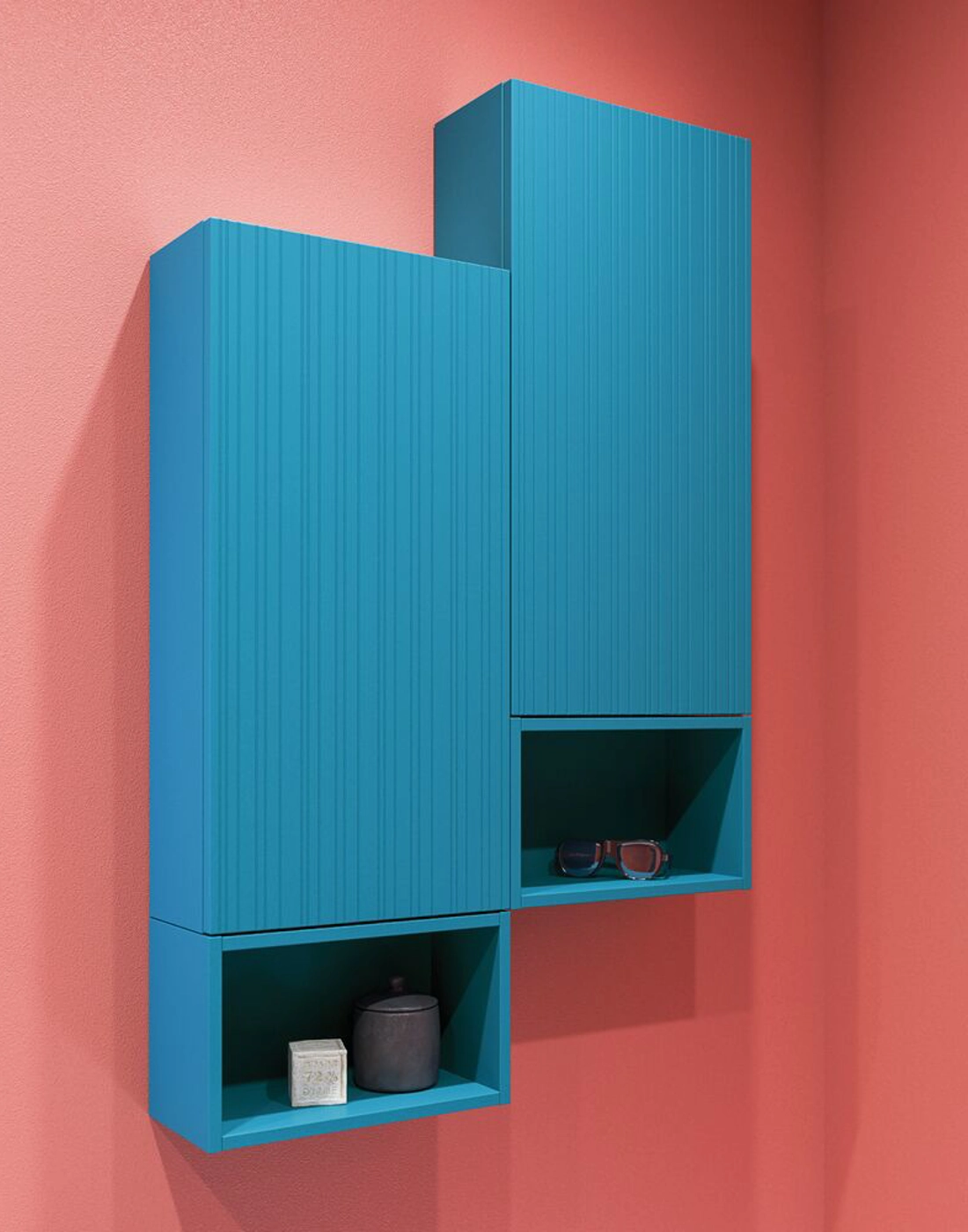 Organiser badet ditt med stil ved hjelp av Dansani Inzo overskap med en unik riflet front og 2 glasshyller for smart oppbevaring. Den riflede fronten gir et iøynefallende design som tilfører personlighet og eleganse til badet. Med dette overskapet kan du holde orden på baderomsproduktene dine, som kremer og deodorant, slik at de alltid er lett tilgjengelige. Velg mellom flere ulike farger for å finne den perfekte løsningen som matcher resten av badet ditt. OBS: Det tilkommer en oppstartstillegg (BI1) for produkter med valgfri farge. Det betales én gang per valgfri farge, uansettav antall produkter. Husk å tilføre baderomsmøbelet de små praktiske tingene som du har glede av i hverdagen. For eksempel lys i skuffer og skap, innebygde stikkontakter og dempede sensorlamper under møblene som hjelper deg når du er på badet om natten. Tilvalg bestilles samtidig med møblene dine.
