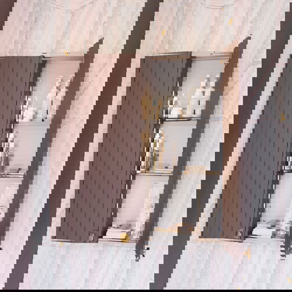 Få ekstra oppbevaring på badet ditt med dette sjarmerende overskapet. Den vakre rillede fronten tilfører en spesiell sjarm og passer perfekt inn i en klassisk og tidløs innredning. Overskapet har en dybde på 19 cm, noe som gjør det ideelt for effektiv utnyttelse av plassen, for eksempel på det tomme området over toalettet. Med to glashyller gir overskapet deg mulighet til å organisere badeproduktene dine på en elegant måte. Enten du ønsker å vise frem favorittproduktene dine eller holde orden på nødvendige toalettartikler, tilbyr dette overskapet både funksjonalitet og stil. Det er en ideell løsning for å skape orden samtidig som det tilfører et estetisk element til badet ditt. OBS: Det tilkommer en oppstartstillegg (BI1) for produkter med valgfri farge. Det betales én gang per valgfri farge, uansettav antall produkter. Husk å tilføre baderomsmøbelet de små praktiske tingene som du har glede av i hverdagen. For eksempel lys i skuffer og skap, innebygde stikkontakter og dempede sensorlamper under møblene som hjelper deg når du er på badet om natten. Tilvalg bestilles samtidig med møblene dine.
