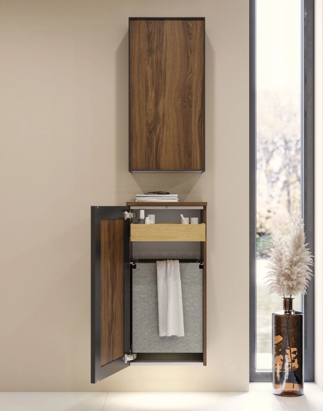 Skap ekstra oppbevaringsplass med Dansani Inzo overskap, som har en sort ramme og 2 glasshyller – en moderne og elegant løsning for badet ditt. Den sorte rammen gir et sofistikert uttrykk som passer godt i moderne baderomsinnredninger. Bruk overskapet til å organisere kremer, deodorant og andre nødvendige produkter, slik at badet alltid ser ryddig og stilfullt ut. Med flere fargealternativer kan du enkelt matche skapet til resten av badet ditt. OBS: Det tilkommer en oppstartstillegg (BI1) for produkter med valgfri farge. Det betales én gang per valgfri farge, uansettav antall produkter. Husk å tilføre baderomsmøbelet de små praktiske tingene som du har glede av i hverdagen. For eksempel lys i skuffer og skap, innebygde stikkontakter og dempede sensorlamper under møblene som hjelper deg når du er på badet om natten. Tilvalg bestilles samtidig med møblene dine.