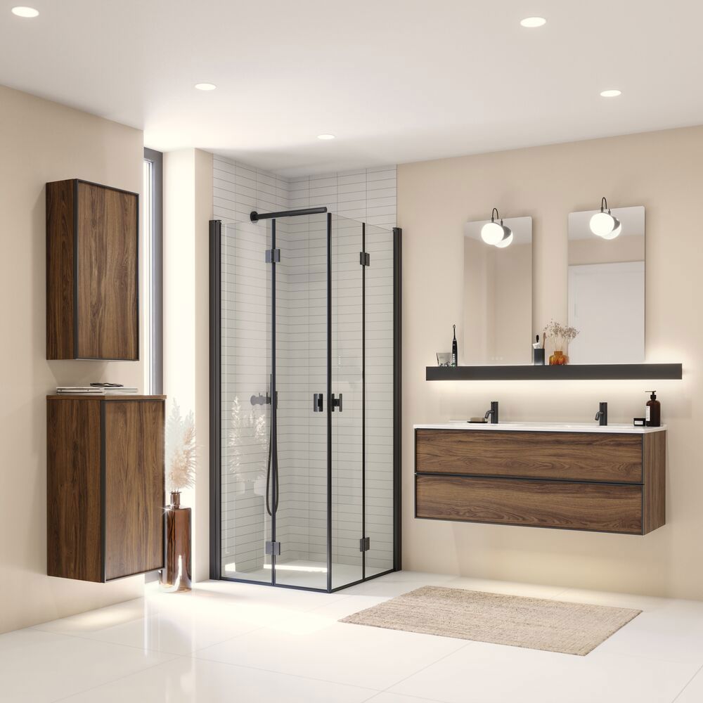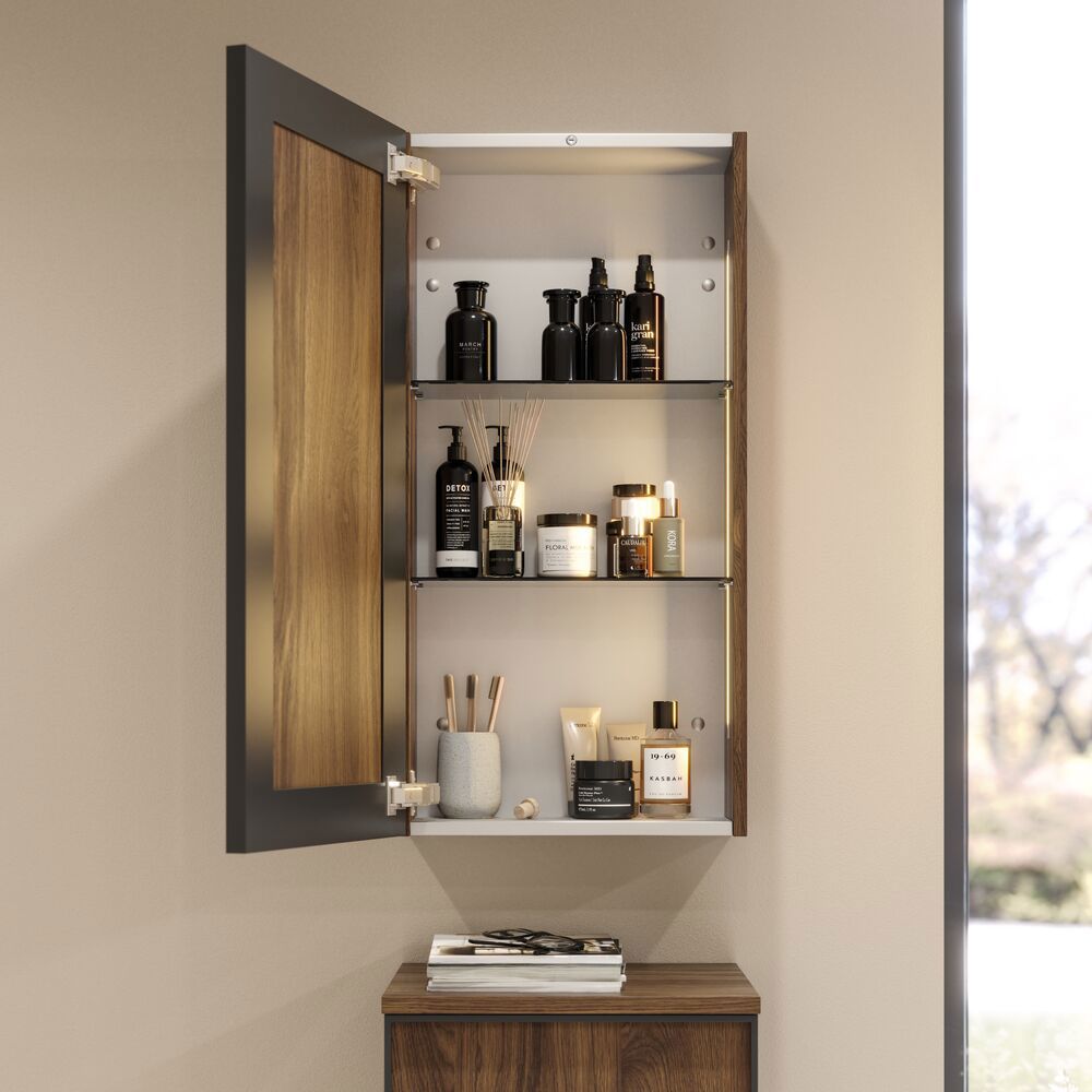Skap ekstra oppbevaringsplass med Dansani Inzo overskap, som har en sort ramme og 2 glasshyller – en moderne og elegant løsning for badet ditt. Den sorte rammen gir et sofistikert uttrykk som passer godt i moderne baderomsinnredninger. Bruk overskapet til å organisere kremer, deodorant og andre nødvendige produkter, slik at badet alltid ser ryddig og stilfullt ut. Med flere fargealternativer kan du enkelt matche skapet til resten av badet ditt. OBS: Det tilkommer en oppstartstillegg (BI1) for produkter med valgfri farge. Det betales én gang per valgfri farge, uansettav antall produkter. Husk å tilføre baderomsmøbelet de små praktiske tingene som du har glede av i hverdagen. For eksempel lys i skuffer og skap, innebygde stikkontakter og dempede sensorlamper under møblene som hjelper deg når du er på badet om natten. Tilvalg bestilles samtidig med møblene dine.
