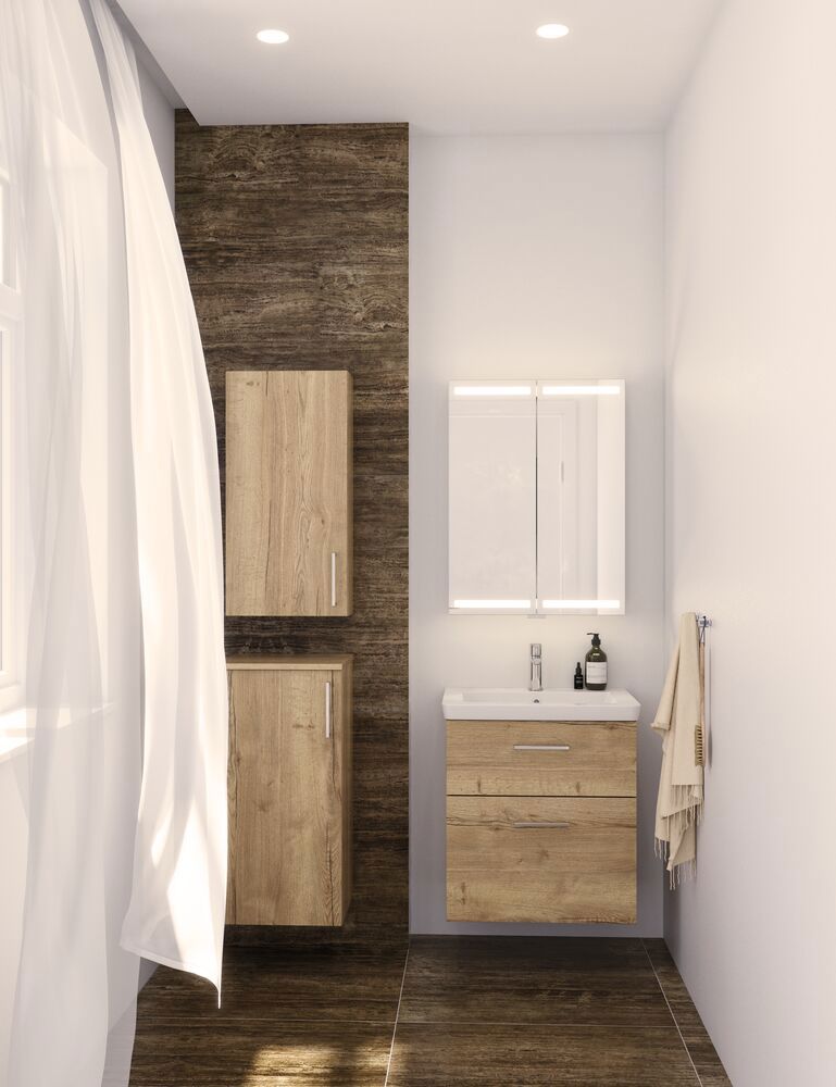 Frigjør plass og organiser badet med overskap. Dette praktiske skapet med 2 glasshyller er både stilig og funksjonelt. Bruk skapet til oppbevaring på badet for å holde orden på kremer, deodoranter og lignende. Skapet fås i flere ulike dekor som passer til resten av badet ditt. OBS: Det tilkommer en oppstartstillegg (BI1) for produkter med valgfri farge. Det betales én gang per valgfri farge, uansettav antall produkter. Husk å tilføre baderomsmøbelet de små praktiske tingene som du har glede av i hverdagen. For eksempel lys i skuffer og skap, innebygde stikkontakter og dempede sensorlamper under møblene som hjelper deg når du er på badet om natten. Tilvalg bestilles samtidig med møblene dine.