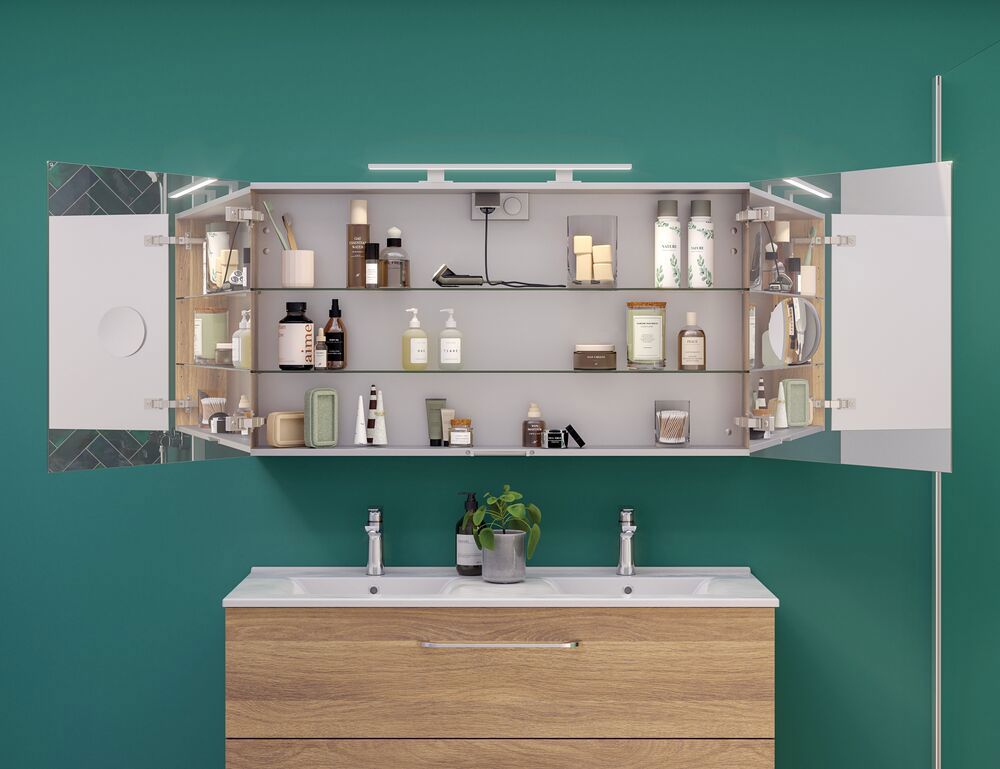 Select speilskap er mye mer enn bare et speilskap - det er din personlige oppgradering av badet. Velg dine egne lamper og skap den perfekte belysningen for å starte dagen med stil. Med speilskapet får du rikelig med oppbevaringsplass og en stikkontakt inne i speilskapet for elektriske apparater. Opplev komfort og eleganse i ett med Select speilskap - din daglige følgesvenn for en strålende morgen.