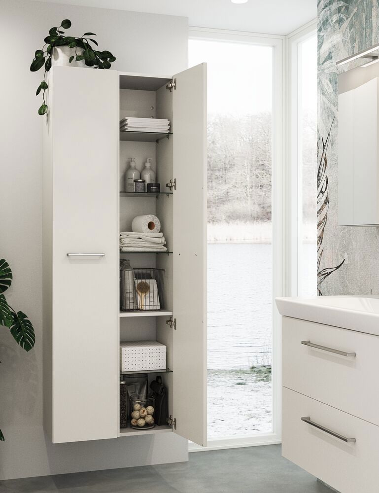 Select speilskap er mye mer enn bare et speilskap - det er din personlige oppgradering av badet. Velg dine egne lamper og skap den perfekte belysningen for å starte dagen med stil. Med speilskapet får du rikelig med oppbevaringsplass og en stikkontakt inne i speilskapet for elektriske apparater. Opplev komfort og eleganse i ett med Select speilskap - din daglige følgesvenn for en strålende morgen.