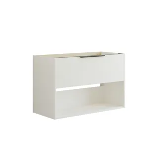 Dette servantskapet kombinerer det beste fra to verdener: en praktisk skuff, en åpen plass til å vise frem favorittsakene dine og en stripete front som gir et unikt og elegant utseende. Velg mellom fargene hvit, sand eller lyseblå for å finne den som passer best til ditt bad. Håndtaket er allerede montert, så den er klar til bruk.