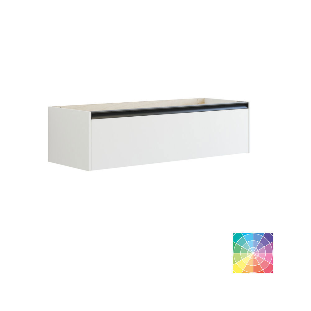 Gjør badet ditt til en stilfull oase med servantskapet med integrert grep. Dette skapet har én dyp skuff som er 32 cm høy, og tilbyr optimal lagringsplass for dine essensielle badeartikler. Grepet er standard svart, noe som tilfører en moderne kontrast til badet ditt. Velger du derimot å få servantskapet i en valgfri farge, vil grepet bli farget i samme nyanse, noe som skaper en harmonisk sammenheng. Det minimalistiske designet med det integrerte grepet gir et rent og moderne uttrykk som passer perfekt til ethvert moderne bad. Det er ikke bare funksjonelt, men også en estetisk tillegg som gjør det enkelt å holde orden i rommet ditt. OBS: Det tilkommer en oppstartstillegg (BI1) for produkter med valgfri farge. Det betales én gang per valgfri farge, uansettav antall produkter. Husk å tilføre baderomsmøbelet de små praktiske tingene som du har glede av i hverdagen. For eksempel lys i skuffer og skap, innebygde stikkontakter og dempede sensorlamper under møblene som hjelper deg når du er på badet om natten. Tilvalg bestilles samtidig med møblene dine.