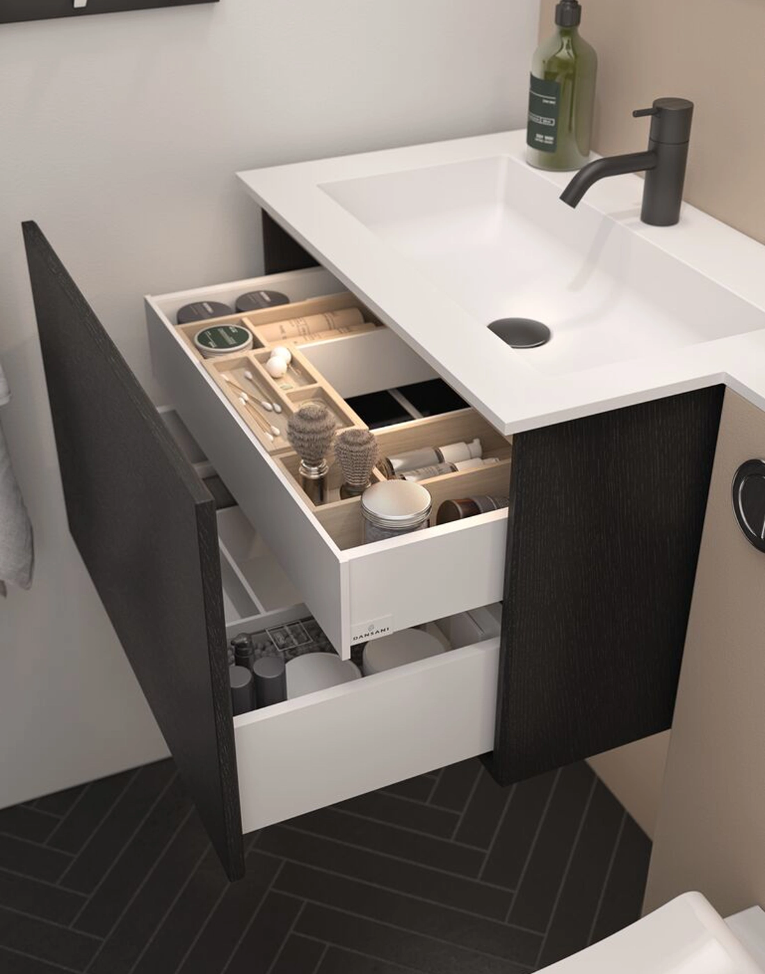 Gi badet ditt en vakker kombinasjon av eleganse og praktisk funksjonalitet med dette Dansani Calidris servantskap med 1 skuff. Servantskapet er designet med et minimalistisk uttrykk og rene linjer som tilfører baderomsinnredningen en sofistikert estetikk. Med et 40 cm dypt servantskap er det plass til både stil og oppbevaring. Den romslige skuffen gir deg mulighet til å organisere og oppbevare alt du trenger på badet på en elegant måte. OBS: Det tilkommer en oppstartstillegg (BI1) pr. eik og valgfri farge. Det betales én gang per eik og valgfri farge, uansettav antall produkter. Husk å tilføre baderomsmøbelet de små praktiske tingene som du har glede av i hverdagen. For eksempel lys i skuffer og skap, innebygde stikkontakter og dempede sensorlamper under møblene som hjelper deg når du er på badet om natten. Tilvalg bestilles samtidig med møblene dine.