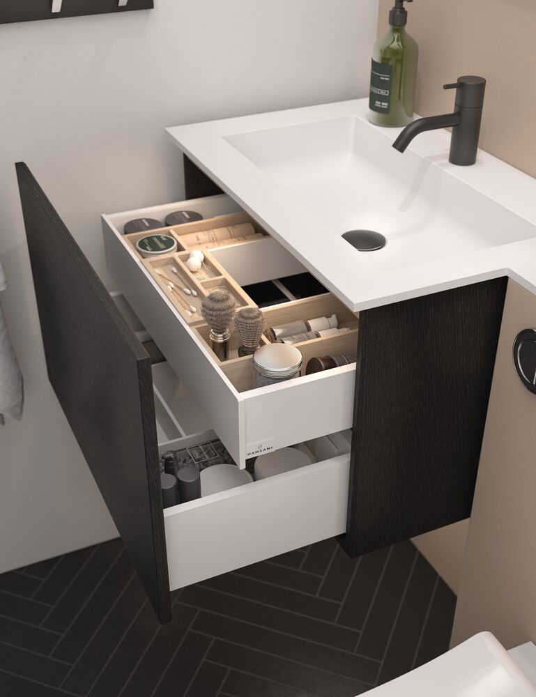 Gi badet ditt en vakker kombinasjon av eleganse og praktisk funksjonalitet med dette Dansani Calidris servantskap med 1 skuff. Servantskapet er designet med et minimalistisk uttrykk og rene linjer som tilfører baderomsinnredningen en sofistikert estetikk. Med et 40 cm dypt servantskap er det plass til både stil og oppbevaring. Den romslige skuffen gir deg mulighet til å organisere og oppbevare alt du trenger på badet på en elegant måte. OBS: Det tilkommer en oppstartstillegg (BI1) pr. eik og valgfri farge. Det betales én gang per eik og valgfri farge, uansettav antall produkter. Husk å tilføre baderomsmøbelet de små praktiske tingene som du har glede av i hverdagen. For eksempel lys i skuffer og skap, innebygde stikkontakter og dempede sensorlamper under møblene som hjelper deg når du er på badet om natten. Tilvalg bestilles samtidig med møblene dine.