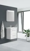 Oppgrader badet ditt med Dansani Mido+ servantskap med 1 skuff - her i en dybde på 35 cm. Dette servantskapet gir deg den ekstra oppbevaringsplassen du trenger uten at det går på bekostning av design og stil. Med myke lukkemekanismer, slitesterke materialer og en strømlinjeformet estetikk er dette skapet en perfekt kombinasjon av funksjonalitet og eleganse. Skap en organisert og stilren atmosfære på badet med Dansani Mido+. Alle Mido+-skap leveres med det klassiske Base-håndtaket i krom. Du kan velge et annet håndtak for et annet utseende, men husk at det må bestilles sammen med møblene dine. Husk å tilføre baderomsmøbelet de små praktiske tingene som du har glede av i hverdagen. For eksempel lys og trebrett til skuffene dine.