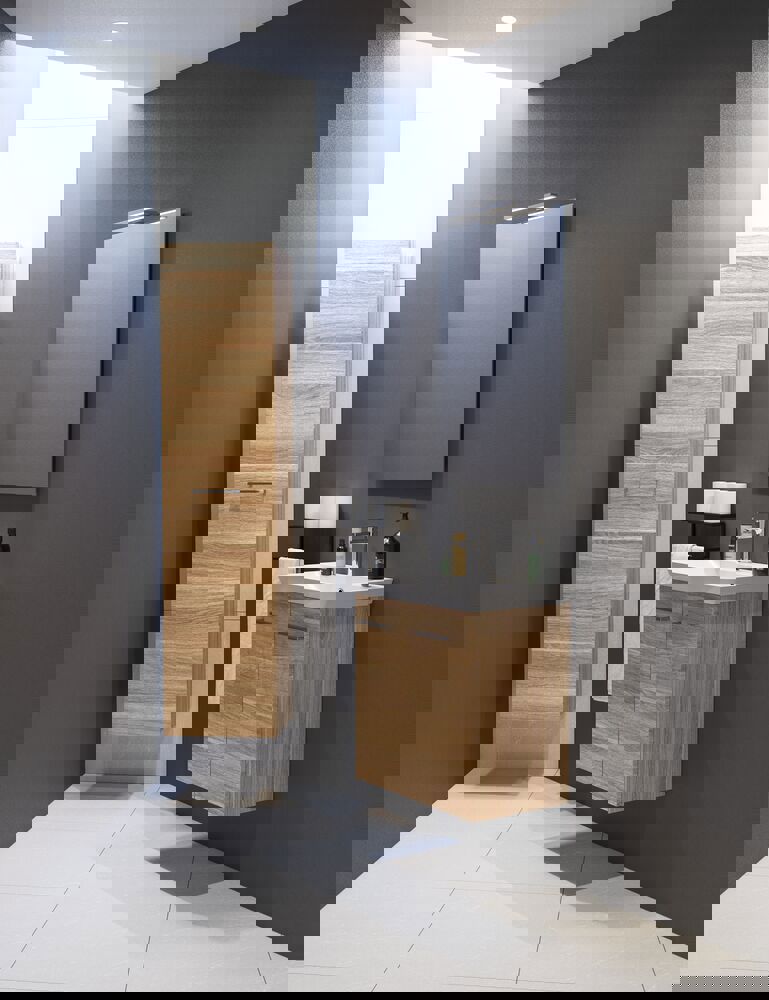 Dansani Mido+ servantskap med dør er bare 35 cm dypt, noe som gjør det perfekt for deg som har begrenset plass på badet. Dansani Mido+ gir mye for pengene, og selv om Mido+ er en av våre billigste serier, har vi ikke gått på akkord med verken design eller kvalitet. Bak dørene er det rikelig med oppbevarings plass. Alle Mido+-skap leveres med det klassiske Base-håndtaket i krom. Du kan velge et annet håndtak for et annet utseende, men husk at det må bestilles sammen med møblene dine.