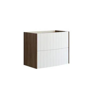 Dette servantskap med 2 skuffer har en sjarmerende retrodesign. De buede frontene har vakre riller som gir et karakteristisk uttrykk. Servantskapene fås i flere ulike dekor, slik at du kan velge den fargen som passer best til din personlige stil. I tillegg til at servantskapene er vakre å se på, er de også praktiske med to romslige skuffer til oppbevaring av nødvendigheter. Tilfør badet tidløs eleganse med dette servantskap, og nyt det unike uttrykket det gir rommet. OBS: Det tilkommer en oppstartstillegg (BI1) for produkter med valgfri farge. Det betales én gang per valgfri farge, uansettav antall produkter. Husk å tilføre baderomsmøbelet de små praktiske tingene som du har glede av i hverdagen. For eksempel lys i skuffer og skap, innebygde stikkontakter og dempede sensorlamper under møblene som hjelper deg når du er på badet om natten. Tilvalg bestilles samtidig med møblene dine.