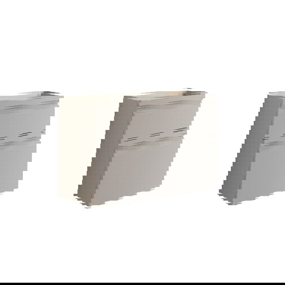 Dette servantskap med 2 skuffer er 64 cm høyt og har en ekstra høy bunnskuffe som gir deg mer lagringsplass. Den integrerte grep-løsningen sikrer enkel tilgang til skuffene og tilfører et moderne preg. Velg mellom flere forskjellige farger for å tilpasse skapet til din personlige stil. Med dette servantskapet kan du enkelt organisere badeproduktene dine og holde alt ryddig. Med et servantskap med 2 skuffer får du både praktisk funksjonalitet og et flott tilskudd til badet ditt. Gjør rommet ditt mer organisert og elegant med dette fantastiske servantskapet. OBS: Det tilkommer en oppstartstillegg (BI1) for produkter med valgfri farge. Det betales én gang per valgfri farge, uansettav antall produkter. Husk å tilføre baderomsmøbelet de små praktiske tingene som du har glede av i hverdagen. For eksempel lys i skuffer og skap, innebygde stikkontakter og dempede sensorlamper under møblene som hjelper deg når du er på badet om natten. Tilvalg bestilles samtidig med møblene dine.