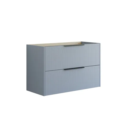 Dette servantskapet kombinerer funksjonalitet og stil med sine 2 romslige skuffer og en elegant stripete front. Dette skapet er tilgjengelig i hvitt, sandfarget eller lyseblått og vil gi badet ditt et moderne og unikt utseende. Skuffene gir rikelig med oppbevaringsplass, og håndtakene er montert og klare til bruk.