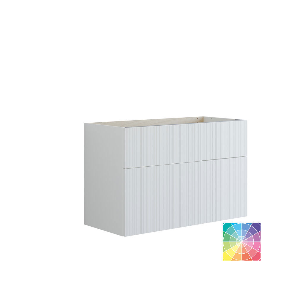 Vaskeskapet med 2 skuffer måler 64 cm i høyden og har en ekstra høy bunnskuff som gir deg ekstra oppbevaringsplass til baderomsartiklene dine. Den riflede fronten gir skapet et unikt og moderne utseende som virkelig skiller seg ut i interiøret. Du kan velge mellom flere farger for å finne den som passer best til din personlige stil. Med dette servantskapet kan du enkelt organisere tingene dine og holde orden på badet. Den kombinerer praktisk funksjonalitet med et stilig design, noe som gjør den til et utmerket tilskudd til badet ditt. Forvandle rommet ditt til en mer organisert og elegant oase med dette flotte servantskapet. OBS: Det tilkommer en oppstartstillegg (BI1) for produkter med valgfri farge. Det betales én gang per valgfri farge, uansettav antall produkter. Husk å tilføre baderomsmøbelet de små praktiske tingene som du har glede av i hverdagen. For eksempel lys i skuffer og skap, innebygde stikkontakter og dempede sensorlamper under møblene som hjelper deg når du er på badet om natten. Tilvalg bestilles samtidig med møblene dine.