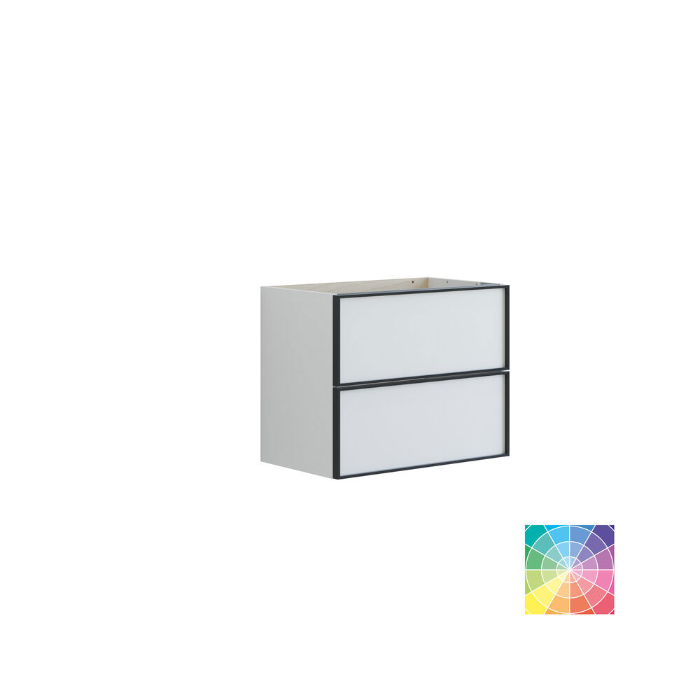 Oppgrader badet ditt med et servantskap med 2 romslige skuffer. Med en dybde på bare 35 cm gir servantskapet en plassbesparende løsning uten å gå på kompromiss med lagringsmulighetene. Den svarte aluminiumsrammen rundt skuffene gir servantskapet et eksklusivt detalj som tilfører kant og stil til rommet. Uansett hvilken farge du velger, vil servantskapet bringe eleganse og praktisk oppbevaring til baderomsinnredningen din. OBS: Det tilkommer en oppstartstillegg (BI1) for produkter med valgfri farge. Det betales én gang per valgfri farge, uansettav antall produkter. Husk å tilføre baderomsmøbelet de små praktiske tingene som du har glede av i hverdagen. For eksempel lys i skuffer og skap, innebygde stikkontakter og dempede sensorlamper under møblene som hjelper deg når du er på badet om natten. Tilvalg bestilles samtidig med møblene dine.