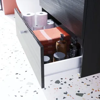Dansani Mido+ servantskap med 2 skuffer er dansk design til en overkommelig pris. Mido+ er vår prisgunstige serie, men vi har ikke gått på kompromiss med verken design eller materialer. I dette vakre servantskapet får du to skuffer til oppbevaring av baderomsartikler, og selvfølgelig har servantskapet også flere tilvalgsmuligheter. Dansani Mido+ servantskap er tilgjengelig i en flere dekor, slik at du kan få et servantskap som passer til ditt bad og din personlige stil. Alle Mido+-skap leveres med det klassiske Base-håndtaket i krom. Du kan velge et annet håndtak for et annet utseende, men husk at det må bestilles sammen med møblene dine. Husk å tilføre baderomsmøbelet de små praktiske tingene som du har glede av i hverdagen. For eksempel lys og trebrett til skuffene dine.