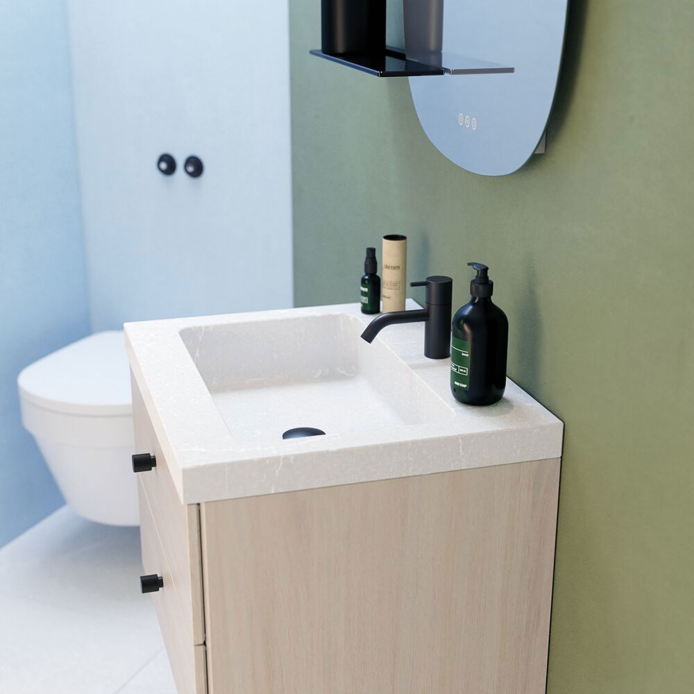 Dansani Calidris servantskap med 2 skuffer er en vakker kombinasjon av stil og funksjonalitet på badet. Det minimalistiske designet og de rene linjene i Calidris servantskap tilfører baderomsmiljøet en sofistikert estetikk. De to romslige skuffene gir ikke bare praktisk oppbevaringsplass, men gjør det også mulig å holde badet ryddig og organisert. Med fokus på både funksjonalitet og design er Dansani Calidris servantskap med 2 skuffer det ideelle valget for deg som ønsker en elegant og velorganisert løsning til badet. OBS: Det tilkommer en oppstartstillegg (BI1) pr. eik og valgfri farge. Det betales én gang per eik og valgfri farge, uansettav antall produkter. Husk å tilføre baderomsmøbelet de små praktiske tingene som du har glede av i hverdagen. For eksempel lys i skuffer og skap, innebygde stikkontakter og dempede sensorlamper under møblene som hjelper deg når du er på badet om natten. Tilvalg bestilles samtidig med møblene dine.