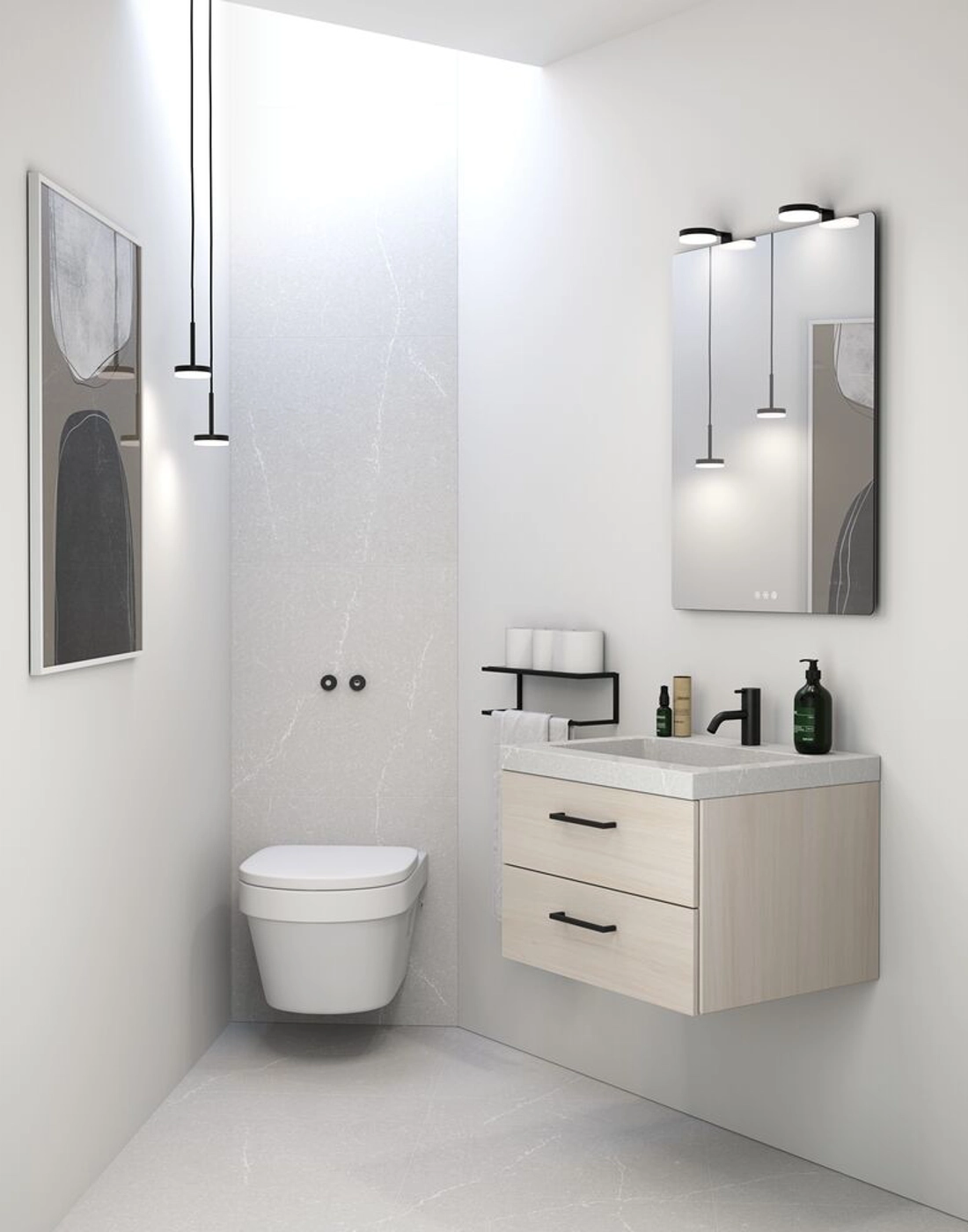 Dansani Calidris servantskap med 2 skuffer er en vakker kombinasjon av stil og funksjonalitet på badet. Det minimalistiske designet og de rene linjene i Calidris servantskap tilfører baderomsmiljøet en sofistikert estetikk. De to romslige skuffene gir ikke bare praktisk oppbevaringsplass, men gjør det også mulig å holde badet ryddig og organisert. Med fokus på både funksjonalitet og design er Dansani Calidris servantskap med 2 skuffer det ideelle valget for deg som ønsker en elegant og velorganisert løsning til badet. OBS: Det tilkommer en oppstartstillegg (BI1) pr. eik og valgfri farge. Det betales én gang per eik og valgfri farge, uansettav antall produkter. Husk å tilføre baderomsmøbelet de små praktiske tingene som du har glede av i hverdagen. For eksempel lys i skuffer og skap, innebygde stikkontakter og dempede sensorlamper under møblene som hjelper deg når du er på badet om natten. Tilvalg bestilles samtidig med møblene dine.