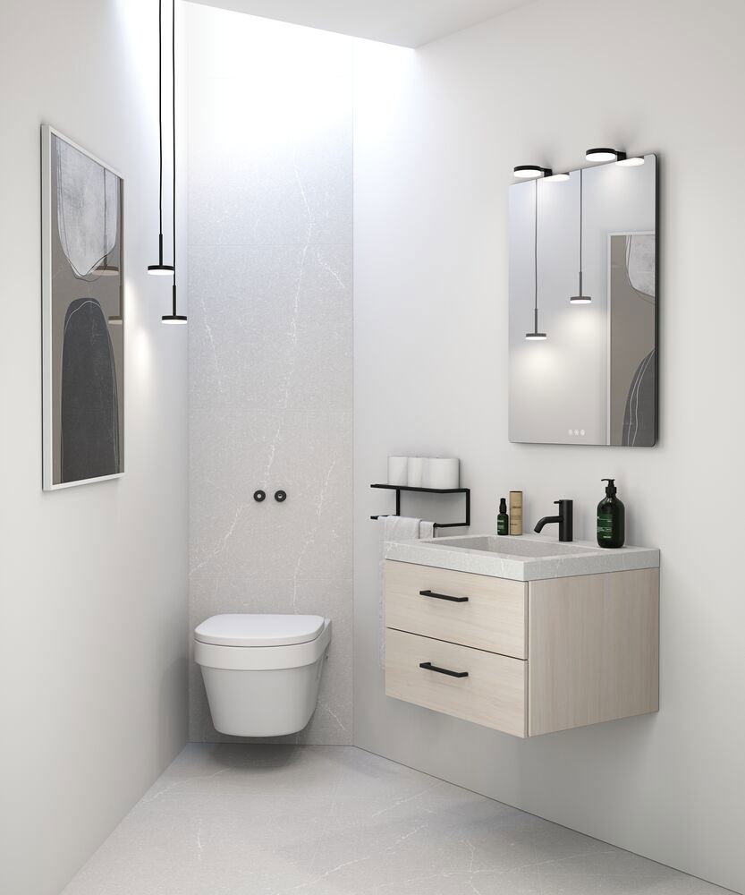 Dansani Calidris servantskap med 2 skuffer er en vakker kombinasjon av stil og funksjonalitet på badet. Det minimalistiske designet og de rene linjene i Calidris servantskap tilfører baderomsmiljøet en sofistikert estetikk. De to romslige skuffene gir ikke bare praktisk oppbevaringsplass, men gjør det også mulig å holde badet ryddig og organisert. Med fokus på både funksjonalitet og design er Dansani Calidris servantskap med 2 skuffer det ideelle valget for deg som ønsker en elegant og velorganisert løsning til badet. OBS: Det tilkommer en oppstartstillegg (BI1) pr. eik og valgfri farge. Det betales én gang per eik og valgfri farge, uansettav antall produkter. Husk å tilføre baderomsmøbelet de små praktiske tingene som du har glede av i hverdagen. For eksempel lys i skuffer og skap, innebygde stikkontakter og dempede sensorlamper under møblene som hjelper deg når du er på badet om natten. Tilvalg bestilles samtidig med møblene dine.