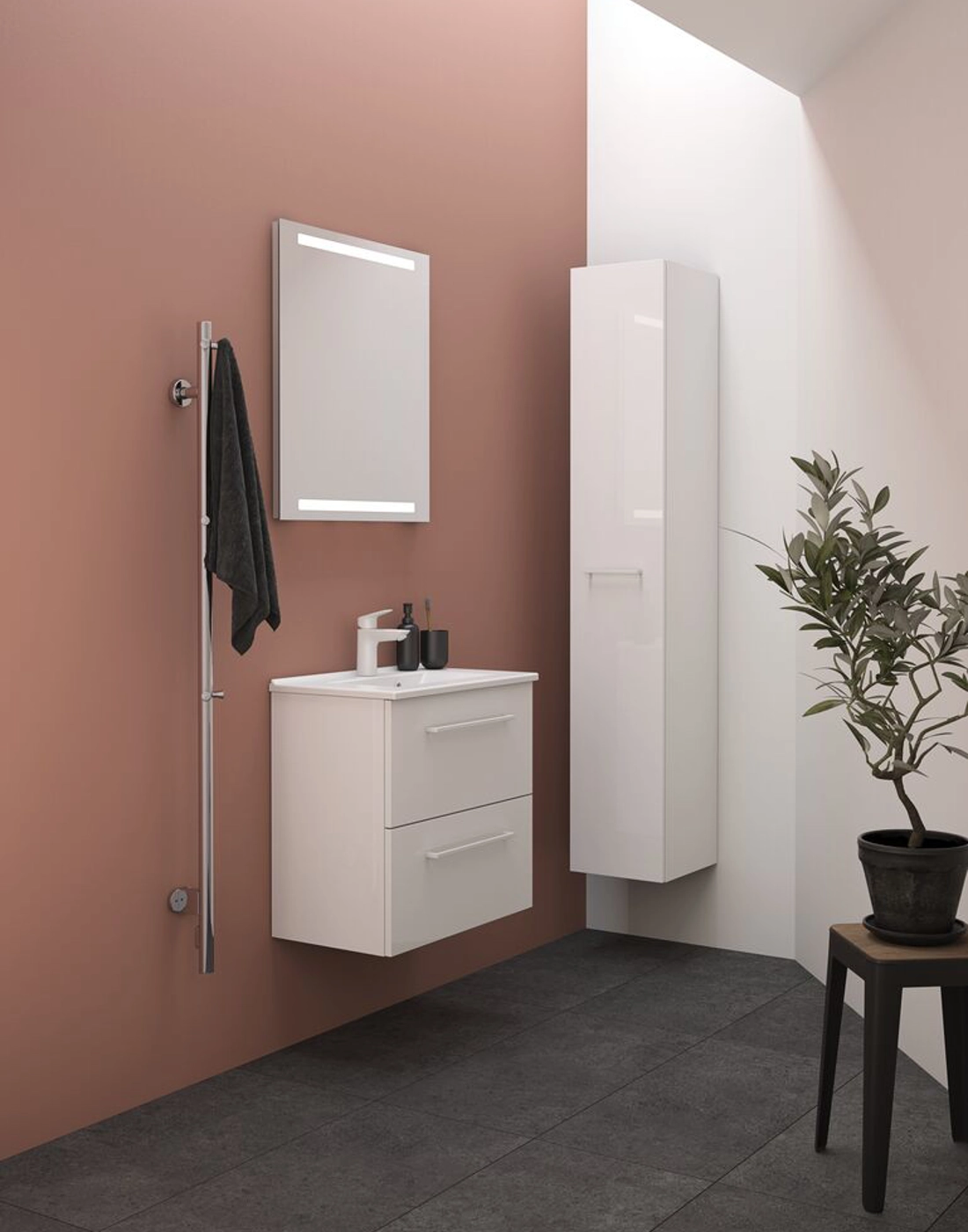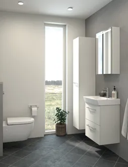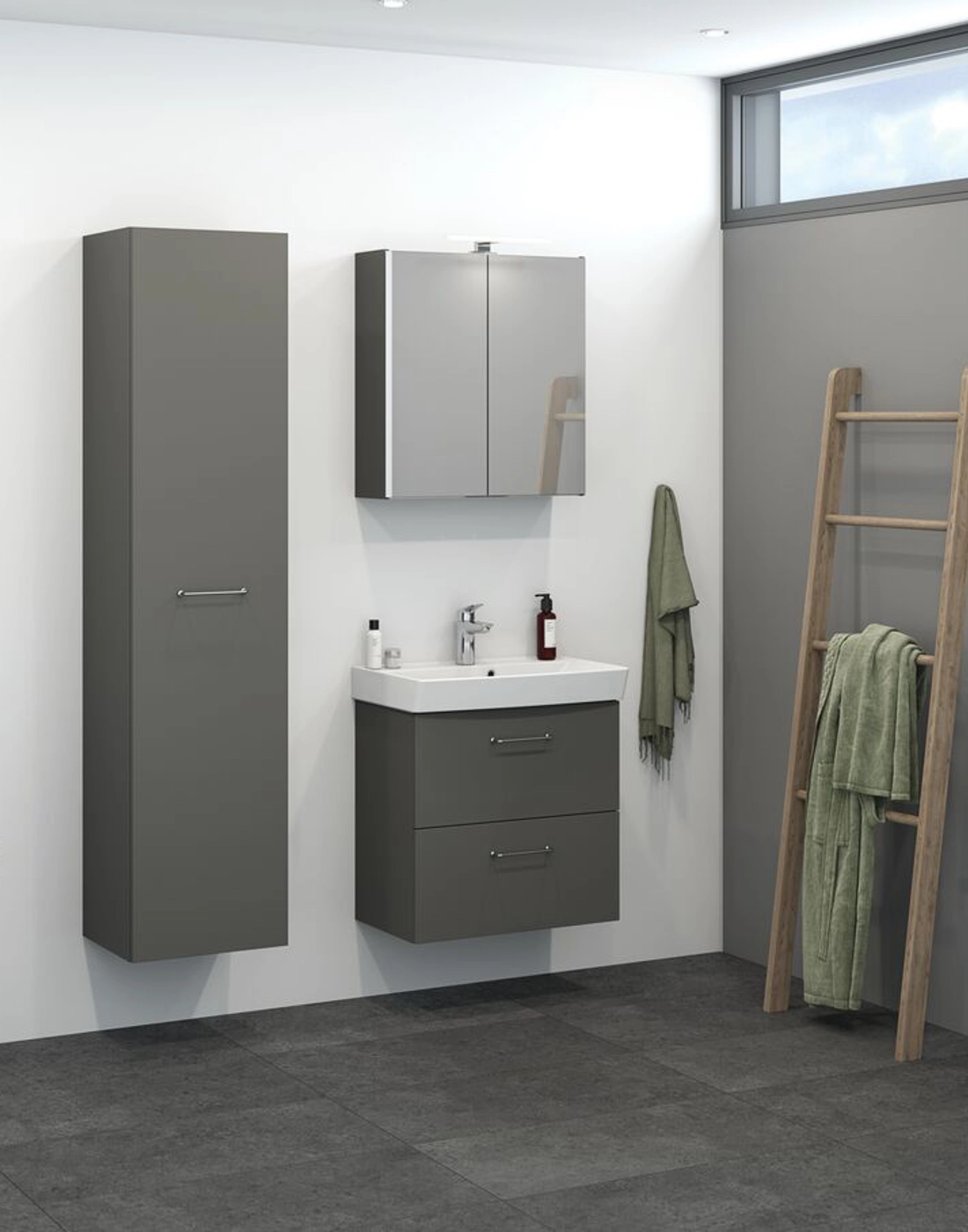 Oppgrader badet ditt budsjettvennlig med Dansani Mido+ servantskap med 2 skuffer. Med en dybde på 35 cm er servantskapet perfekt for mindre bad, gjestetoalett eller fritidsboliger. Dette servantskapet har utskjæring for veggavløp. Servantskapet til Dansani Mido+ er prisgunstig, og du kan også få ekstrautstyr som skuffelys og skuffeinnredning for bedre oversikt og organisering på badet. Alle Mido+-skap leveres med det klassiske Base-håndtaket i krom. Du kan velge et annet håndtak for et annet utseende, men husk at det må bestilles sammen med møblene dine. Husk å tilføre baderomsmøbelet de små praktiske tingene som du har glede av i hverdagen. For eksempel lys og trebrett til skuffene dine.