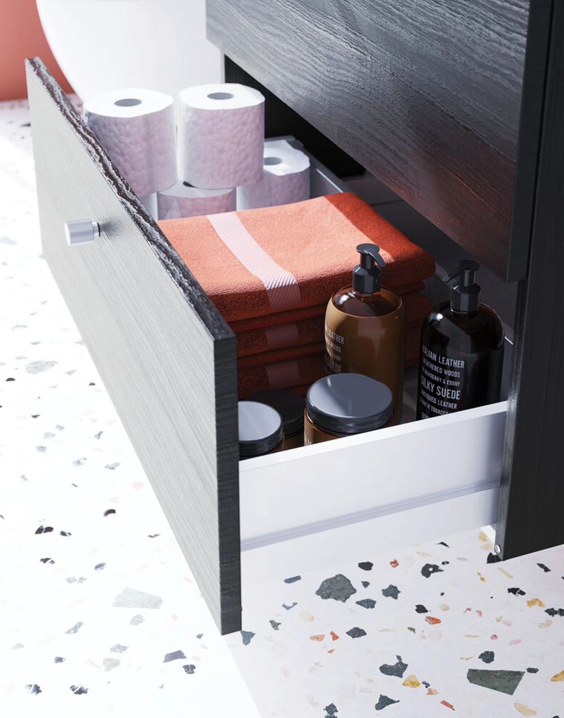 Dansani Mido+ servantskap med 2 skuffer er dansk design til en overkommelig pris. Mido+ er vår prisgunstige serie, men vi har ikke gått på kompromiss med verken design eller materialer. I dette vakre servantskapet får du to skuffer til oppbevaring av baderomsartikler, og selvfølgelig har servantskapet også flere tilvalgsmuligheter. Dansani Mido+ servantskap er tilgjengelig i en flere dekor, slik at du kan få et servantskap som passer til ditt bad og din personlige stil. Alle Mido+-skap leveres med det klassiske Base-håndtaket i krom. Du kan velge et annet håndtak for et annet utseende, men husk at det må bestilles sammen med møblene dine. Husk å tilføre baderomsmøbelet de små praktiske tingene som du har glede av i hverdagen. For eksempel lys og trebrett til skuffene dine.