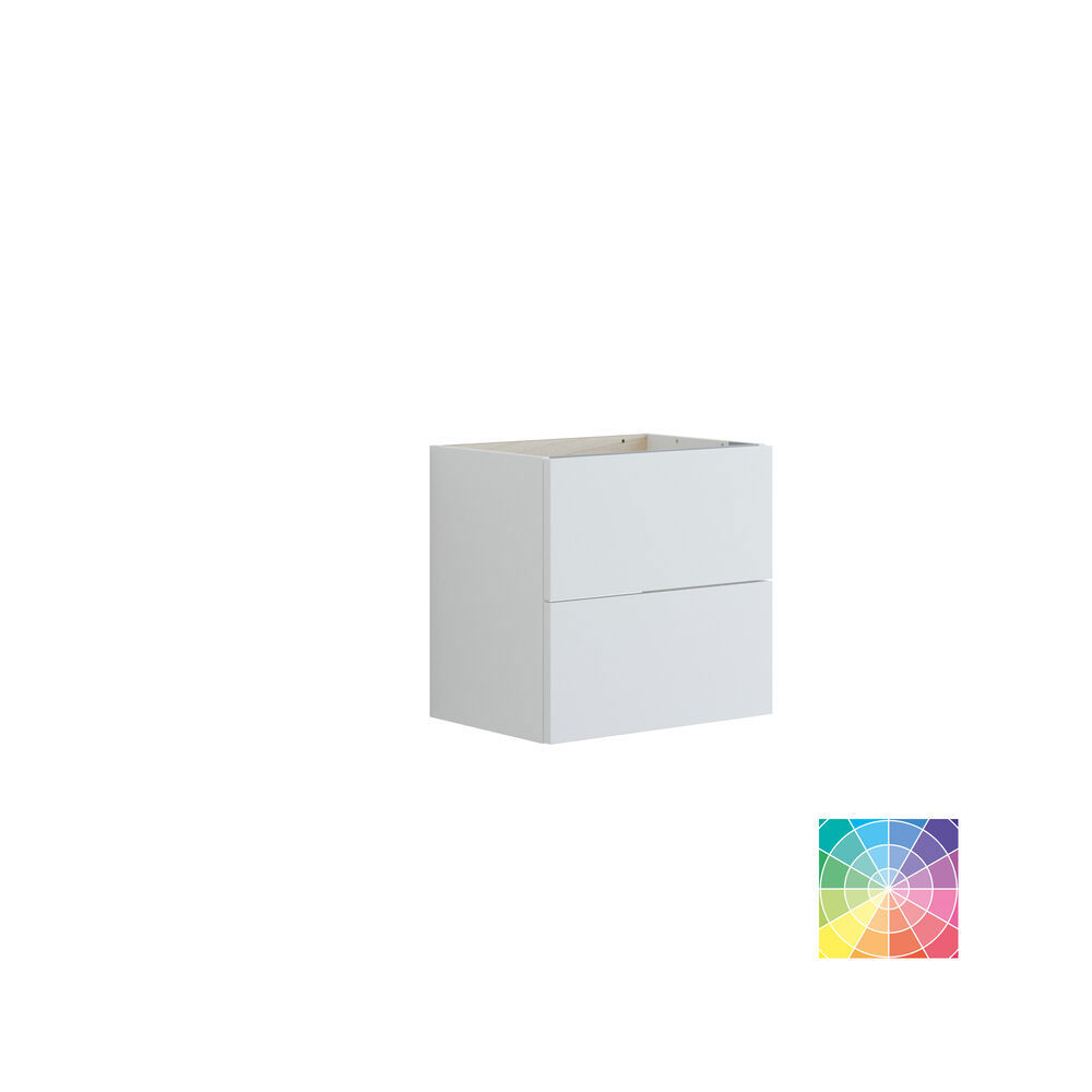 Servantskapet med 2 skuffer er den perfekte løsningen for det moderne badet. Servantskapet er bare 35 cm dypt, men med sine to romslige skuffer har det likevel rikelig med oppbevaringsplass til det du trenger på badet. Den stilige designen og de vakre fargevalgene tilfører eleganse til baderomsinnredningen. Servantskapet er laget av materialer av høy kvalitet. OBS: Det tilkommer en oppstartstillegg (BI1) for produkter med valgfri farge. Det betales én gang per valgfri farge, uansettav antall produkter. Husk å tilføre baderomsmøbelet de små praktiske tingene som du har glede av i hverdagen. For eksempel lys i skuffer og skap, innebygde stikkontakter og dempede sensorlamper under møblene som hjelper deg når du er på badet om natten. Tilvalg bestilles samtidig med møblene dine.