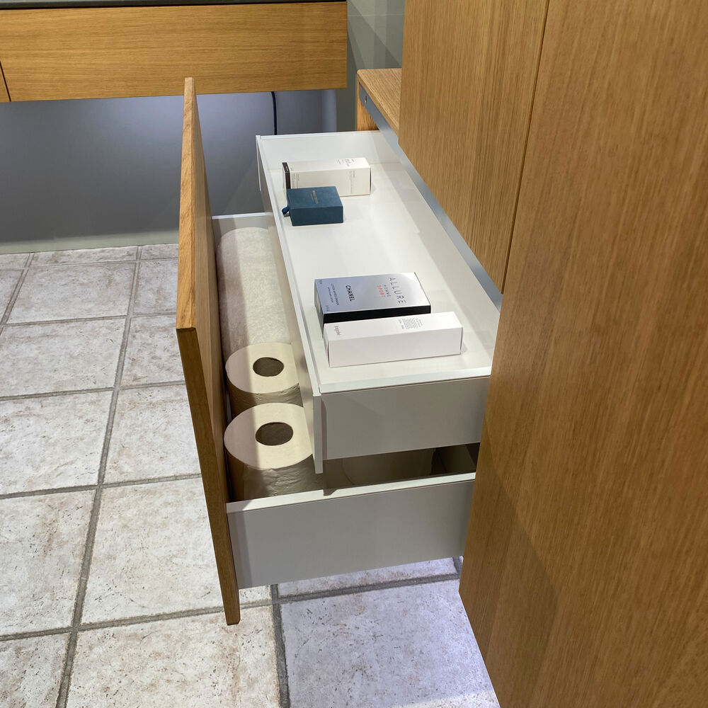 Dansani Calidris underskap med en skuff er den ideelle løsningen for smart og stilren oppbevaring på badet. Skapene har ikke plass til avløp, og passer for deg som ønsker en asymmetrisk løsning med en spesialtilpasset servant, eller for deg som ønsker ekstra oppbevaring andre steder på badet. Den romslige skuffen gjør det mulig å holde orden på badet, det er god plass til kremer, sjampo, hårføner og mye mer. Dansani Calidris underskap gir deg muligheten til å organisere badet ditt på en helhetlig og elegant måte. OBS: Det tilkommer en oppstartstillegg (BI1) pr. eik og valgfri farge. Det betales én gang per eik og valgfri farge, uansettav antall produkter. Husk å tilføre baderomsmøbelet de små praktiske tingene som du har glede av i hverdagen. For eksempel lys i skuffer og skap, innebygde stikkontakter og dempede sensorlamper under møblene som hjelper deg når du er på badet om natten. Tilvalg bestilles samtidig med møblene dine.