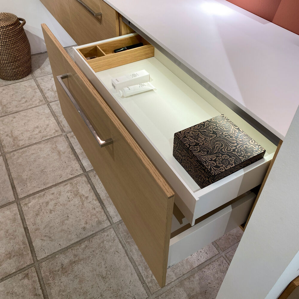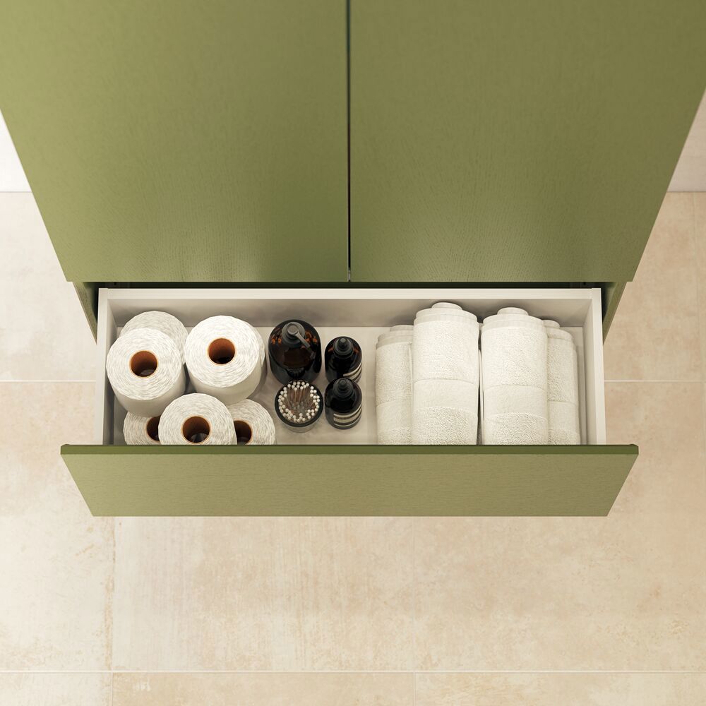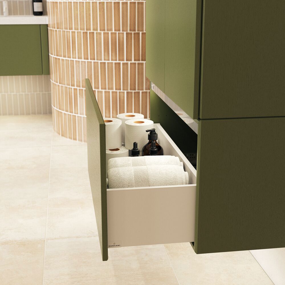 Dansani Calidris underskap med en skuff er den ideelle løsningen for smart og stilren oppbevaring på badet. Skapene har ikke plass til avløp, og passer for deg som ønsker en asymmetrisk løsning med en spesialtilpasset servant, eller for deg som ønsker ekstra oppbevaring andre steder på badet. Den romslige skuffen gjør det mulig å holde orden på badet, det er god plass til kremer, sjampo, hårføner og mye mer. Dansani Calidris underskap gir deg muligheten til å organisere badet ditt på en helhetlig og elegant måte. OBS: Det tilkommer en oppstartstillegg (BI1) pr. eik og valgfri farge. Det betales én gang per eik og valgfri farge, uansettav antall produkter. Husk å tilføre baderomsmøbelet de små praktiske tingene som du har glede av i hverdagen. For eksempel lys i skuffer og skap, innebygde stikkontakter og dempede sensorlamper under møblene som hjelper deg når du er på badet om natten. Tilvalg bestilles samtidig med møblene dine.