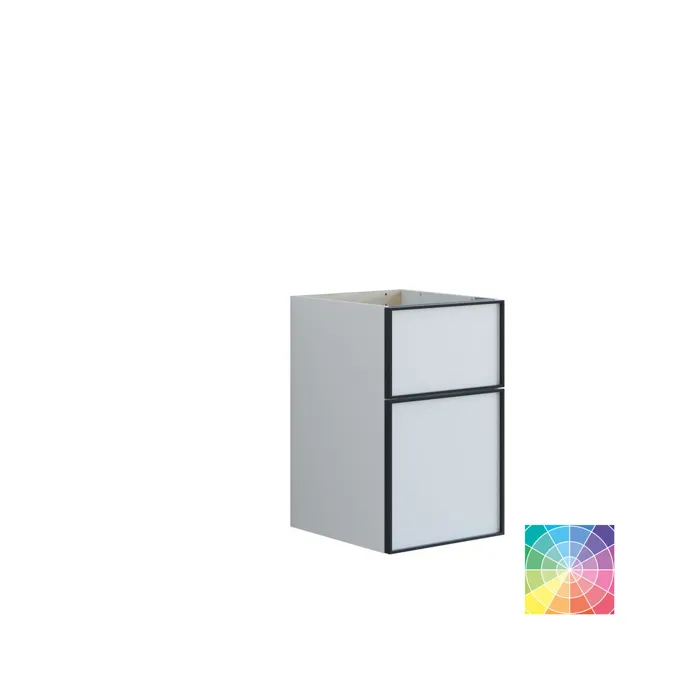 Skapet med 2 skuffer har en høyde på 64 cm og en høy bunnskuffe som gir generøs oppbevaringsplass for alle badeværelsesartiklene dine. Den stilige svarte rammen tilfører et moderne og sofistikert preg til skapene. De kan brukes alene eller i kombinasjon med et servantskap og en benkeplate med en oppstående vask for en interessant asymmetrisk effekt. Velg blant forskjellige farger for å finne skapet som passer best til badet ditt. Skapet med 2 skuffer kombinerer både estetikk og funksjonalitet, noe som gjør badet ditt mer organisert og stilfullt. OBS: Det tilkommer en oppstartstillegg (BI1) for produkter med valgfri farge. Det betales én gang per valgfri farge, uansettav antall produkter. Husk å tilføre baderomsmøbelet de små praktiske tingene som du har glede av i hverdagen. For eksempel lys i skuffer og skap, innebygde stikkontakter og dempede sensorlamper under møblene som hjelper deg når du er på badet om natten. Tilvalg bestilles samtidig med møblene dine.