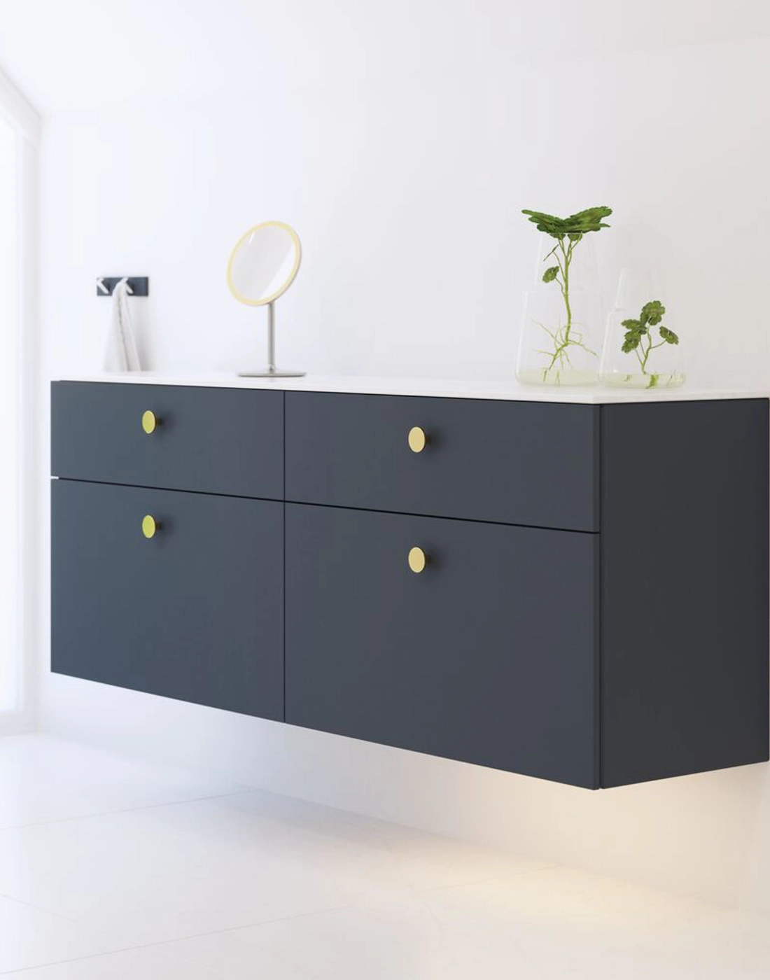 Dansani Calidris underskap med to skuffer er den perfekte løsningen for deg som ønsker smart og stilren oppbevaring på badet. Med Calidris får du gjennomtenkt dansk design, og underskapene er designet for å maksimere plassen uten at det går på bekostning av funksjonalitet eller estetikk. I de to romslige skuffene kan du enkelt organisere og oppbevare toalettsaker, håndklær og andre baderomsartikler på en ryddig og oversiktlig måte. Designet på underskapene er enkelt og tidløst, noe som gjør dem til et stilig valg på ethvert bad. OBS: Det tilkommer en oppstartstillegg (BI1) pr. eik og valgfri farge. Det betales én gang per eik og valgfri farge, uansettav antall produkter. Husk å tilføre baderomsmøbelet de små praktiske tingene som du har glede av i hverdagen. For eksempel lys i skuffer og skap, innebygde stikkontakter og dempede sensorlamper under møblene som hjelper deg når du er på badet om natten. Tilvalg bestilles samtidig med møblene dine.