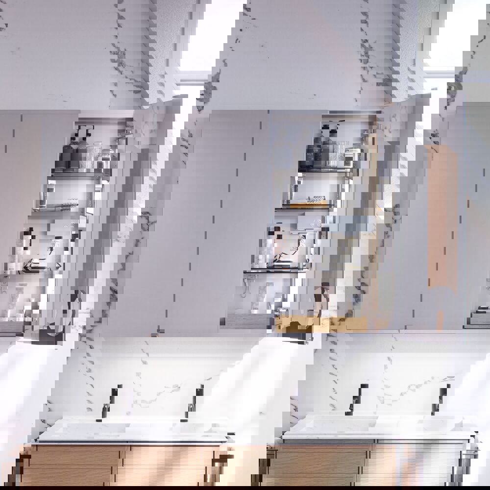 Få praktisk oppbevaring og stilig design med Style speilskap. Speilskapet er perfekt for oppbevaring av kremer, deodorant, negleklippere, tannbørster og mye mer. Legg til lamper til speilskapet og styr lysets temperatur og styrke med et enkelt trykk. Det vakre speilskapet har magnetisk skinne, metallhylle, forstørrelsesspeil og strømuttak, noe som gjør morgen- og kveldsrutinene dine mye enklere. OBS: Det tilkommer en oppstartstillegg (BI1) for produkter med valgfri farge. Det betales én gang per valgfri farge, uansettav antall produkter.
