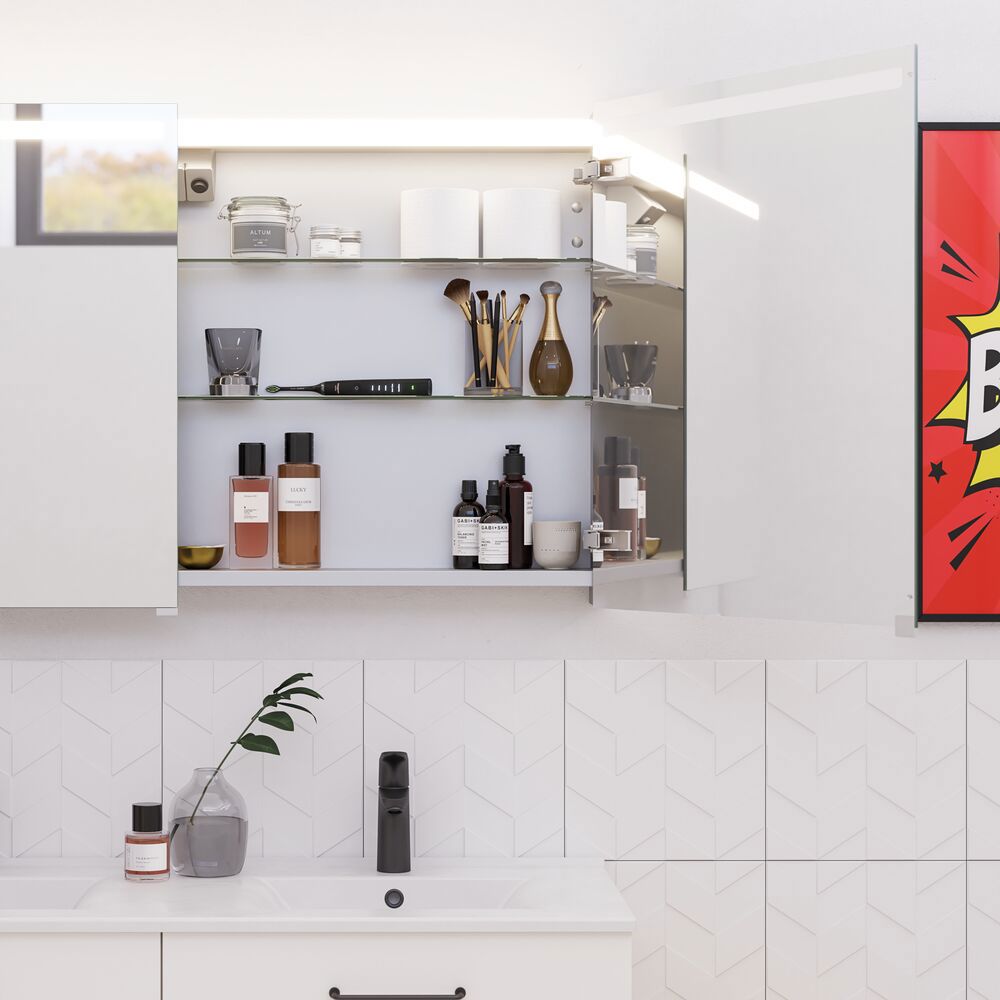 Ta morgenen til nye høyder med speilskapet Top. Speilskapet har en lyslist på toppen, og inne i speilskapet finner du rikelig med oppbevaringsplass og en stikkontakt med bryter. Du får altså mye mer enn du kanskje forventer. Speilskapet fås selvfølgelig med gavler i livlige farger, slik at du kan matche speilskapet med baderomsmøbler og resten av badet.