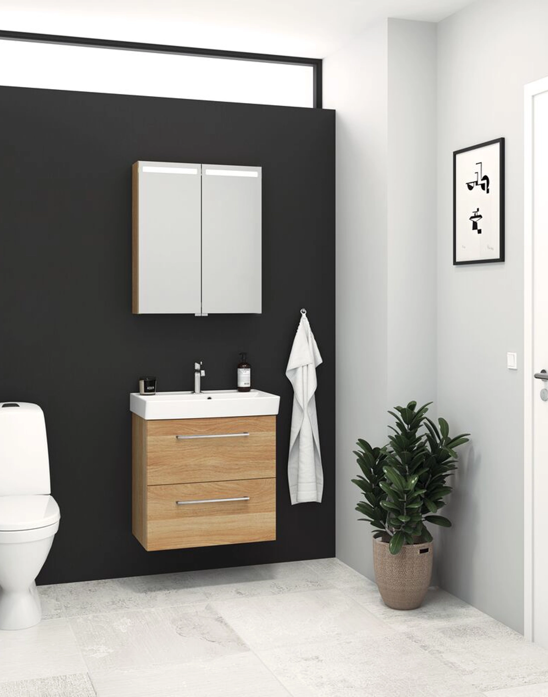 Ta morgenen til nye høyder med speilskapet Top. Speilskapet har en lyslist på toppen, og inne i speilskapet finner du rikelig med oppbevaringsplass og en stikkontakt med bryter. Du får altså mye mer enn du kanskje forventer. Speilskapet fås selvfølgelig med gavler i livlige farger, slik at du kan matche speilskapet med baderomsmøbler og resten av badet.