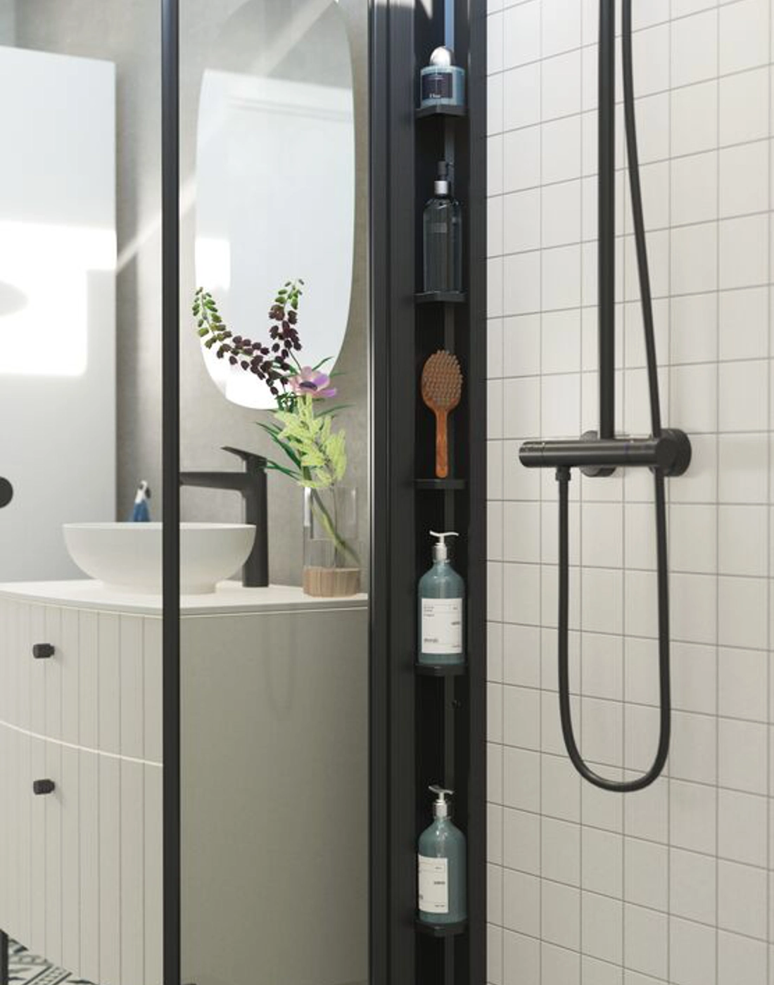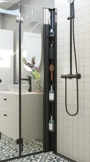 Dansani Tower er en innovativ løsning som gir eksepsjonell oppbevaringsplass i dusjen uten at det går på bekostning av estetikken. Dette praktiske oppbevaringssystemet kombineres sømløst med Dansanis Match dører og vegger for å skape en helhetlig og stilig dusjløsning. Tower har 5 flyttbare hyller som er perfekte for å organisere produktene du trenger i dusjen. Velg en dør eller vegg som er 10 cm smalere for å få plass til Tower hyllen. Dansani Tower er den ideelle løsningen for deg som ønsker å optimalisere plassen i dusjen uten å gå på kompromiss med stil og funksjonalitet. Med Tower får du både praktisk oppbevaringsplass og en elegant dusjopplevelse som gir deg en følelse av velvære og orden i dusjent..