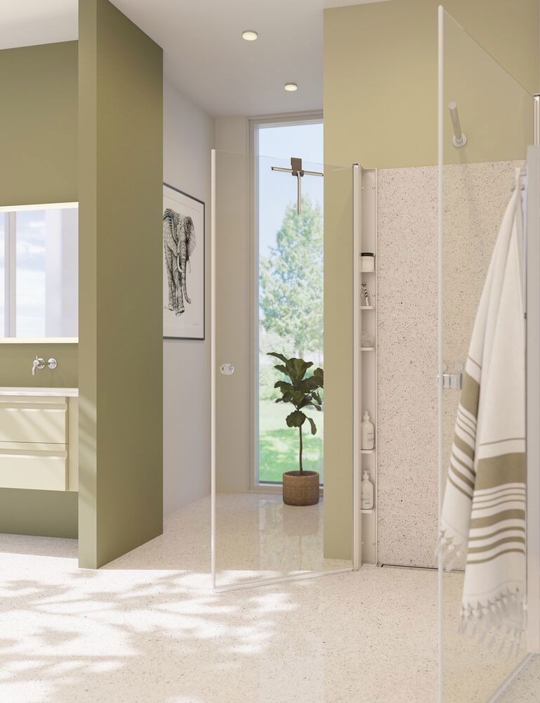 Dansani Tower er en innovativ løsning som gir eksepsjonell oppbevaringsplass i dusjen uten at det går på bekostning av estetikken. Dette praktiske oppbevaringssystemet kombineres sømløst med Dansanis Match dører og vegger for å skape en helhetlig og stilig dusjløsning. Tower har 5 flyttbare hyller som er perfekte for å organisere produktene du trenger i dusjen. Velg en dør eller vegg som er 10 cm smalere for å få plass til Tower hyllen. Dansani Tower er den ideelle løsningen for deg som ønsker å optimalisere plassen i dusjen uten å gå på kompromiss med stil og funksjonalitet. Med Tower får du både praktisk oppbevaringsplass og en elegant dusjopplevelse som gir deg en følelse av velvære og orden i dusjent..