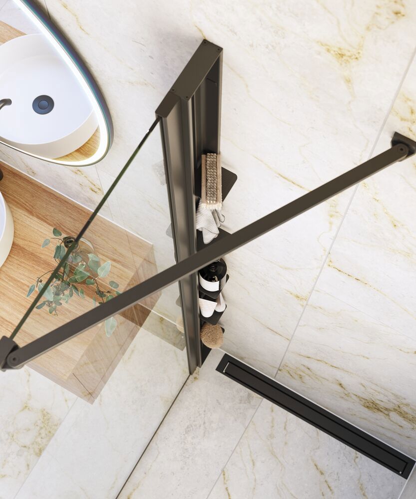 Tower er en innovativ løsning som gir eksepsjonell oppbevaringsplass i dusjen uten at det går på bekostning av estetikken. Tower har 5 flyttbare hyller som er perfekte for å organisere produktene du trenger i dusjen. Velg en dør eller vegg som er 10 cm smalere for å få plass til Tower hyllen. De praktiske knaggene gir deg mulighet til å henge en svamp, en børste eller andre småting rett for hånden.Tower er den ideelle løsningen for deg som ønsker å optimalisere plassen i dusjen uten å gå på kompromiss med stil og funksjonalitet.