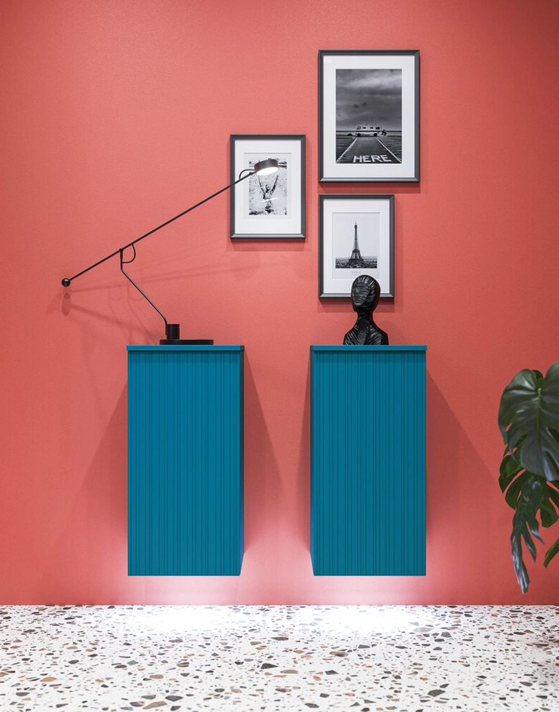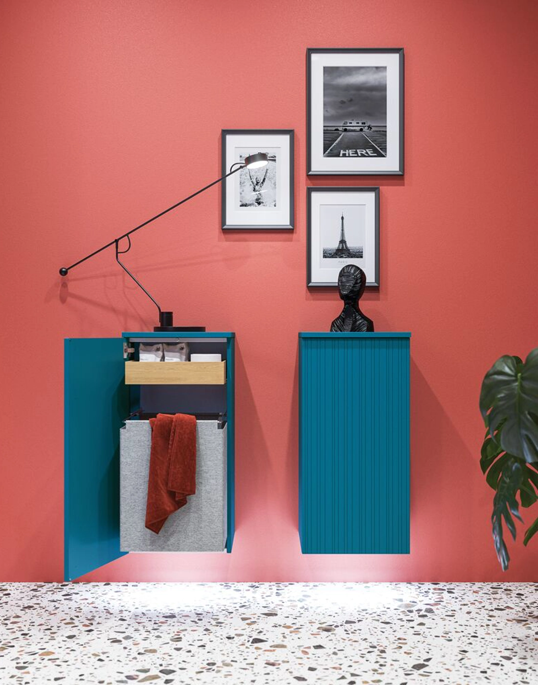 Legg til et stilfullt element på badet ditt med underskapet med riflet front i Versjon B. Dette underskapet har en bredde på 40 cm og en dybde på 35 cm, og leveres med en uttrekkbar skuff og en vaskepose, noe som gir deg optimal oppbevaringsplass for både kosmetikk og klesvask. Den riflede fronten gir et karakteristisk og moderne uttrykk som vil forbedre ethvert bad. Velg dette underskapet for å forene estetikk med funksjonalitet og sikre at alle badeartiklene dine er organisert og lett tilgjengelige. OBS: Det tilkommer en oppstartstillegg (BI1) for produkter med valgfri farge. Det betales én gang per valgfri farge, uansettav antall produkter. Husk å tilføre baderomsmøbelet de små praktiske tingene som du har glede av i hverdagen. For eksempel lys i skuffer og skap, innebygde stikkontakter og dempede sensorlamper under møblene som hjelper deg når du er på badet om natten. Tilvalg bestilles samtidig med møblene dine.