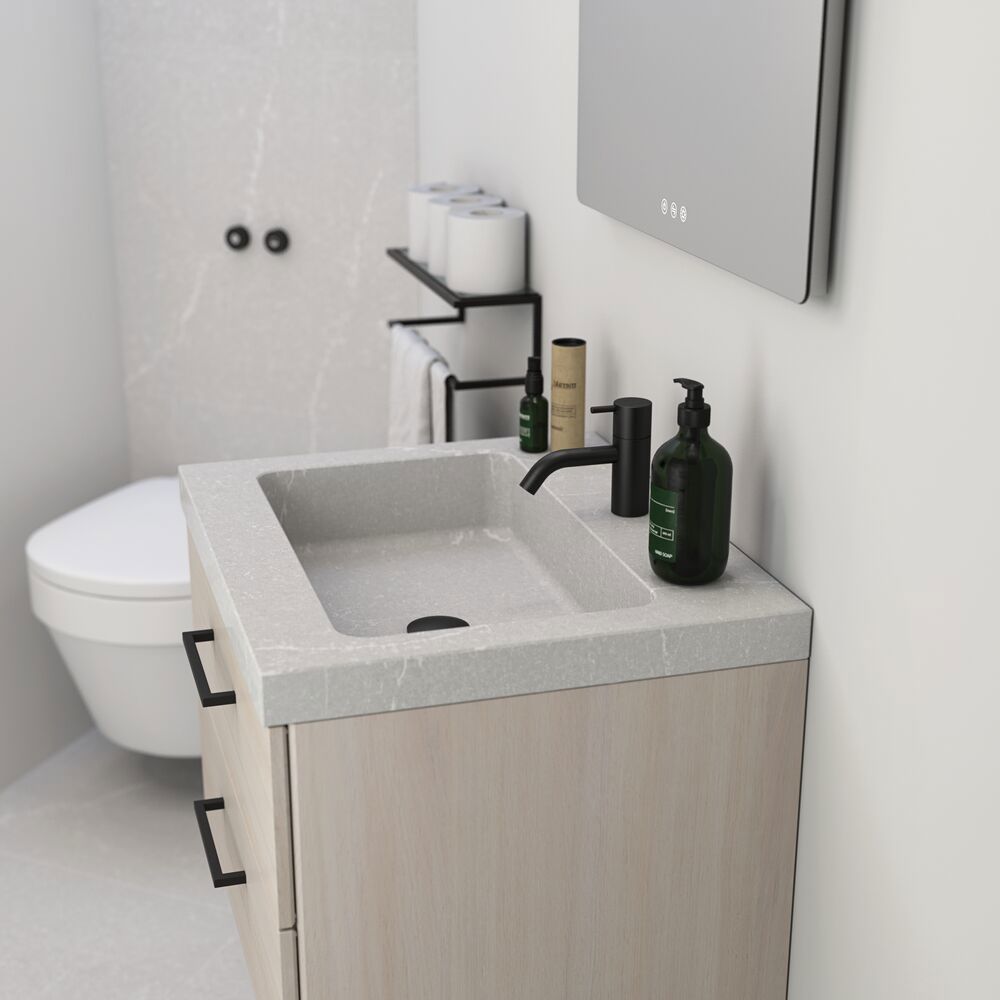 Dansani Calidris Unique servant kombinerer eleganse med kvalitet takket være produksjonen i Silestone materialet. Denne servanten tilbyr ikke bare eksepsjonell estetikk, men også pålitelig ytelse. Silestones unike kombinasjon av skjønnhet og styrke sørger for at Calidris Unique servant forblir vakker og funksjonell i årevis. Denne servanten er et perfekt eksempel på hvordan skjønnhet og bærekraft kan forenes i baderomsdesign. Fargen på servanten kan avvike fra bildet som vises, så vi anbefaler at du ser en fysisk prøve hos en forhandler før du kjøper.