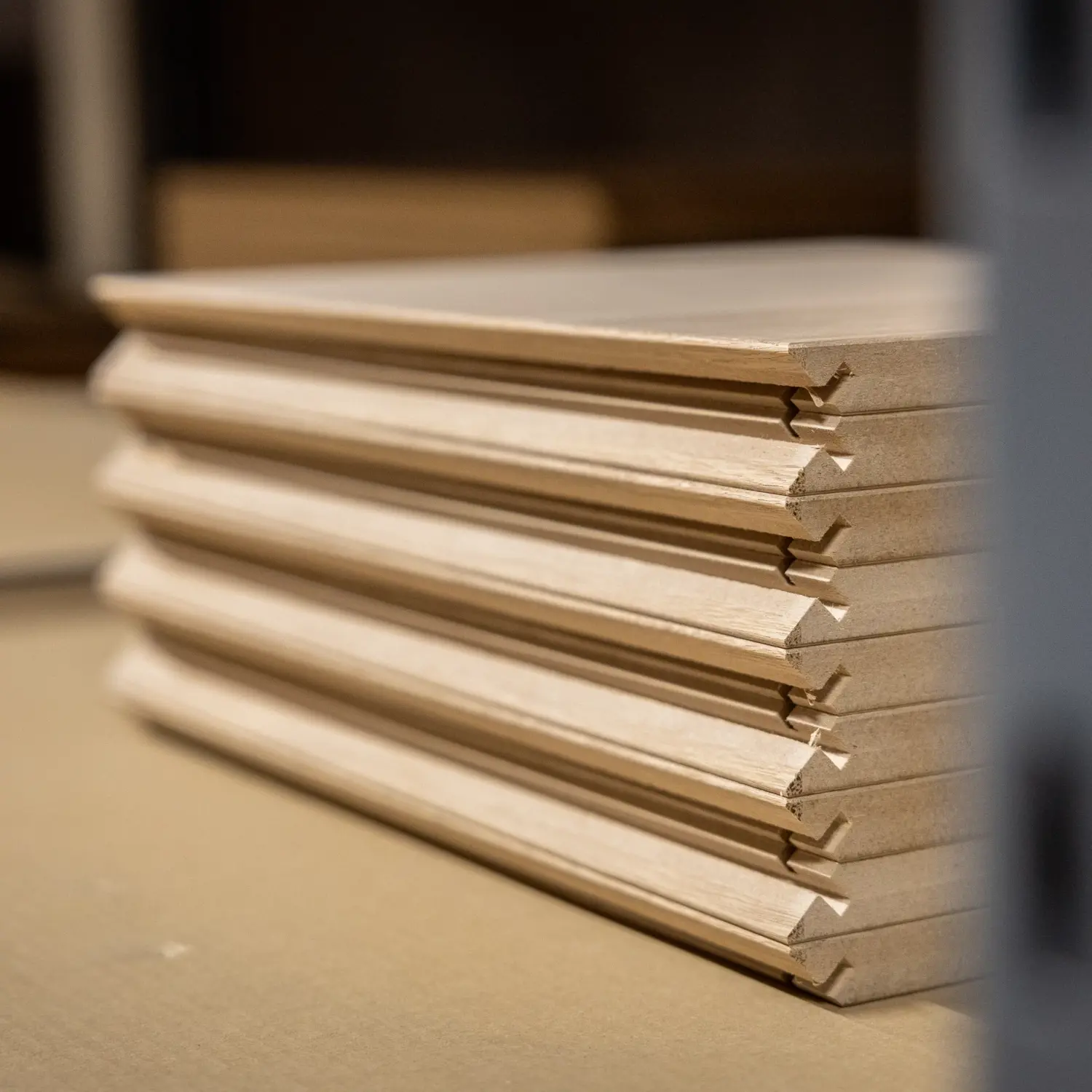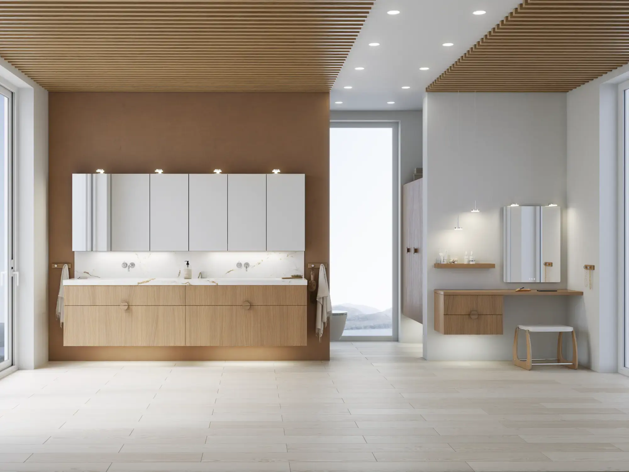 Med Calidris kan du nå velge mellom 7 raffinerte tredekorer og en helfarget finér – alle med mulighet for både riller og rammer. Et håndverksmessig uttrykk som gir baderommet ditt varme, karakter og tidløs eleganse.