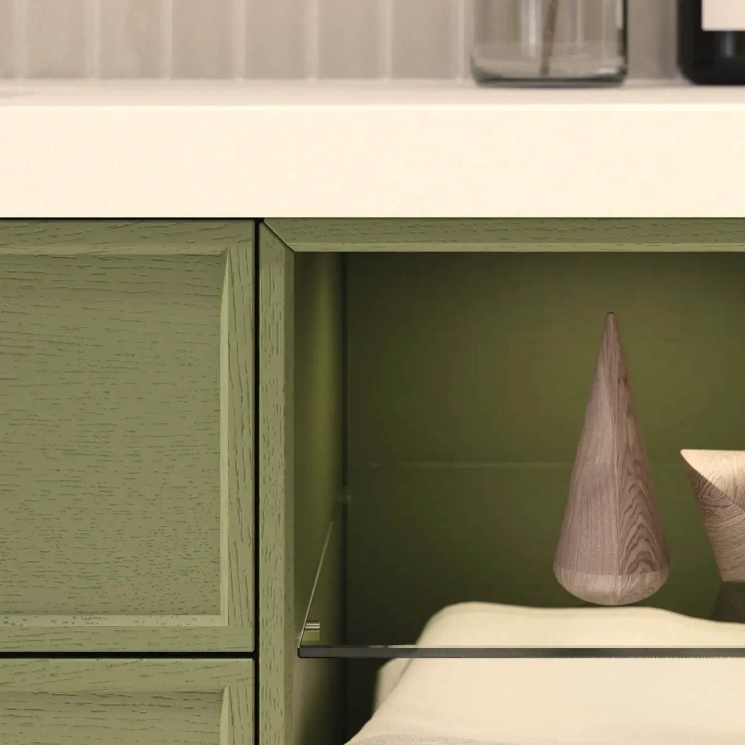 Det sirkulære møter det stringente – en dialog mellom former, farger og materialer som skaper harmoni i rommet. Det myke håndtaket i tre inviterer til berøring og understreker Calidris' sans for håndverk og naturlige materialer.
