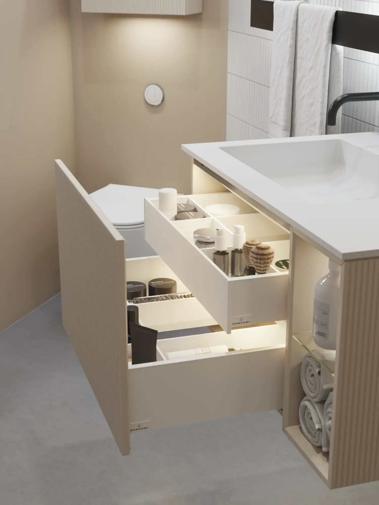 Dansani Calidris-seriens tilbehørsprogram imponerer på samme måte som møblene. Alt er designet så det passer sammen. Velg samme farge som møblene eller skap spennende kontraster.