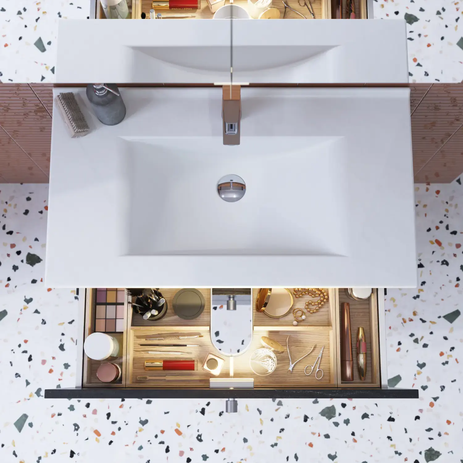 Servantene finnes i små bredder og har smal dybde, så de passer perfekt til det mindre baderommet, samtidig som du får mest mulig arbeids- og skapplass til rådighet.